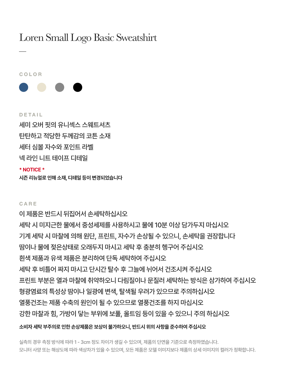 측정 방법에 따라 사이즈에 일부 오차가 있을 수 있습니다.