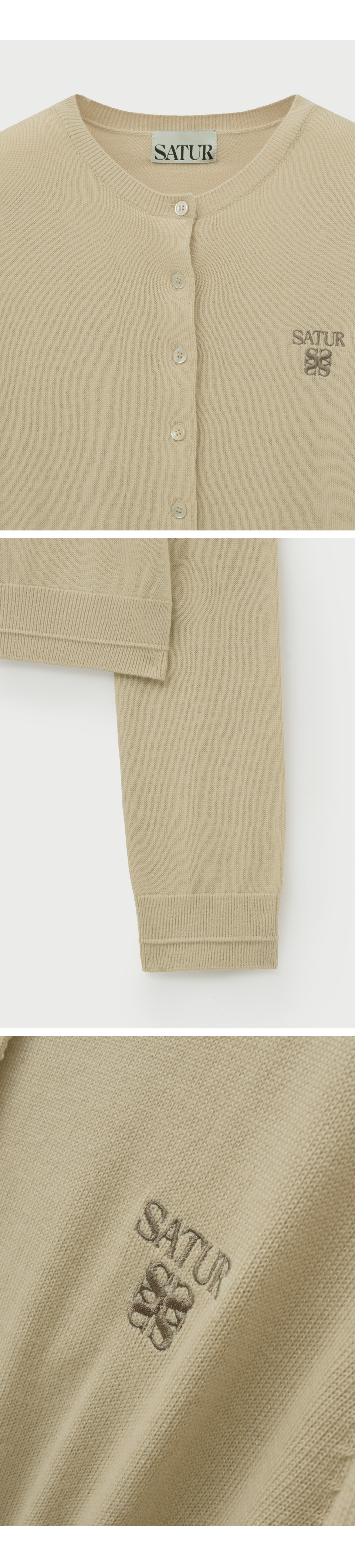 SATUR W Loren Basic Crewneck Fine Cardigan Beige
