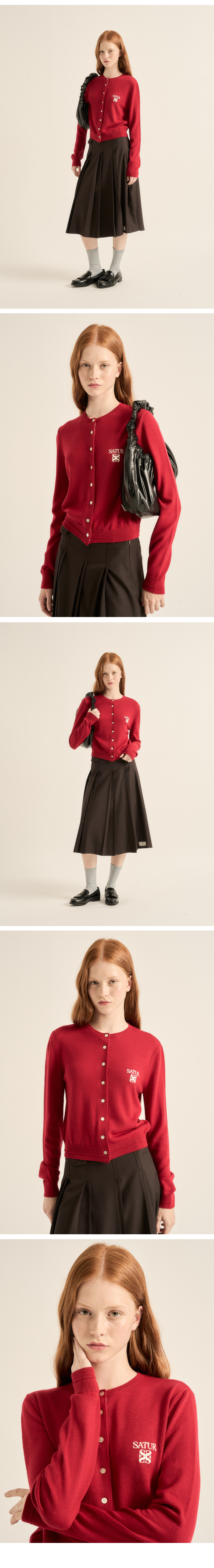 SATUR W Loren Basic Crewneck Fine Cardigan Red