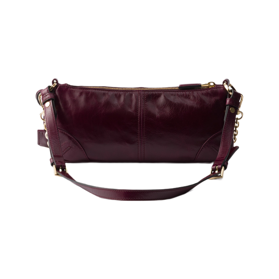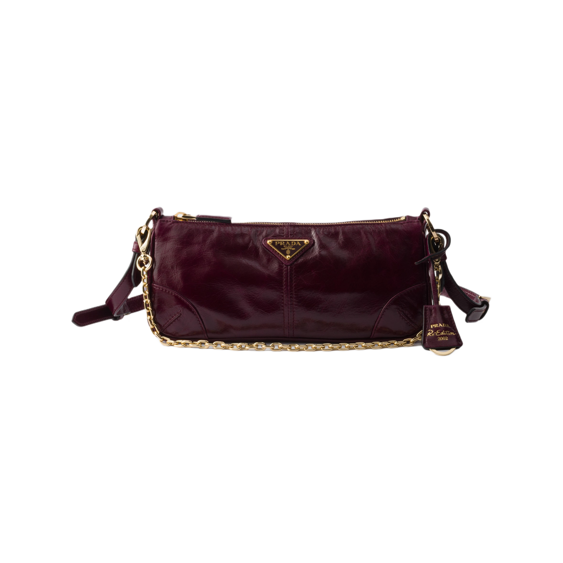 프라다 리에디션 2002 미디움 레더 숄더백 버건디