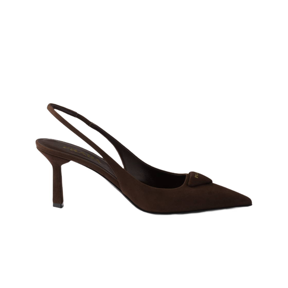 (W) 프라다 스웨이드 슬링백 펌프스 다크 브라운