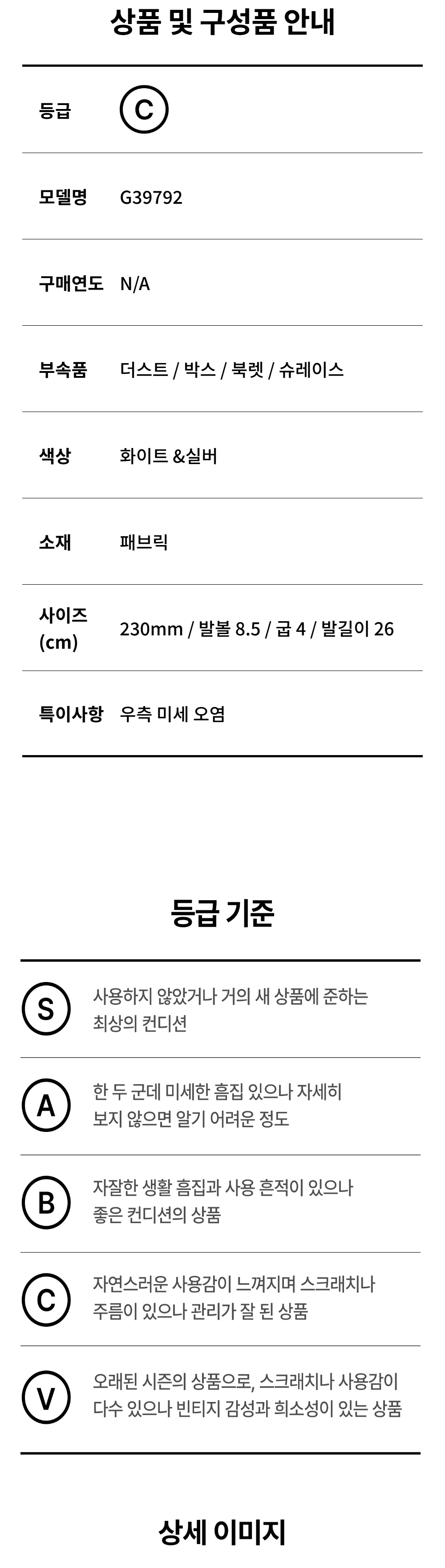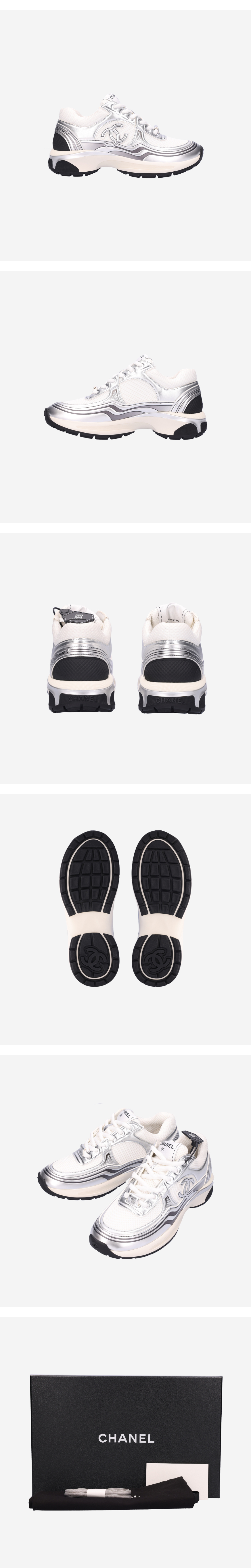 샤넬 G39792 스니커즈 패브릭 라미네이티드 화이트 실버 36