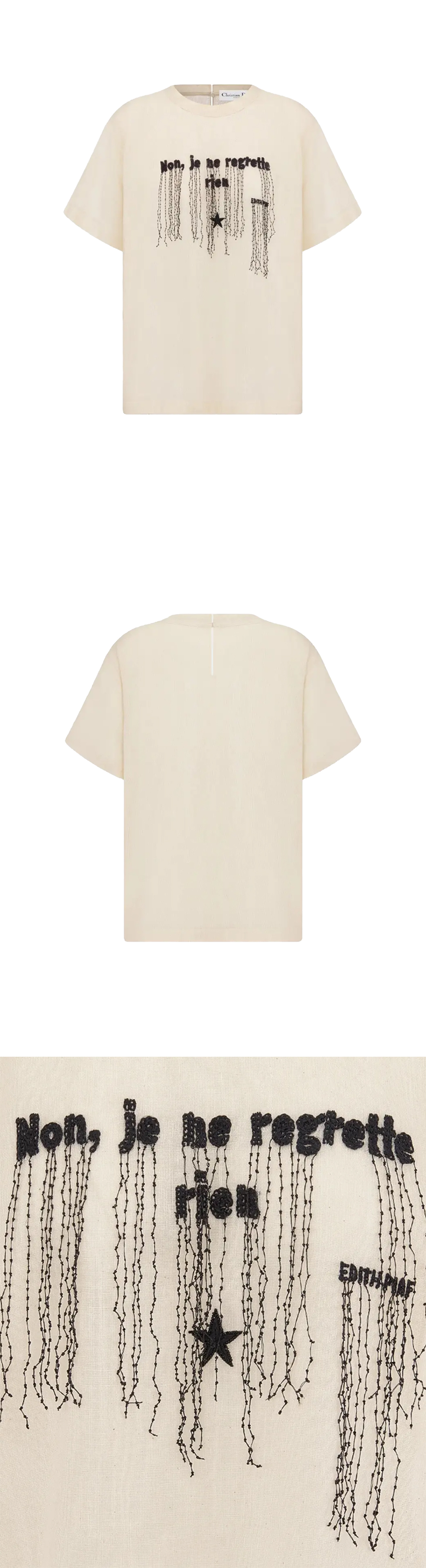 Dior Non Je Ne Regrette Rien Embroidery T Shirt 34 Ivory Black