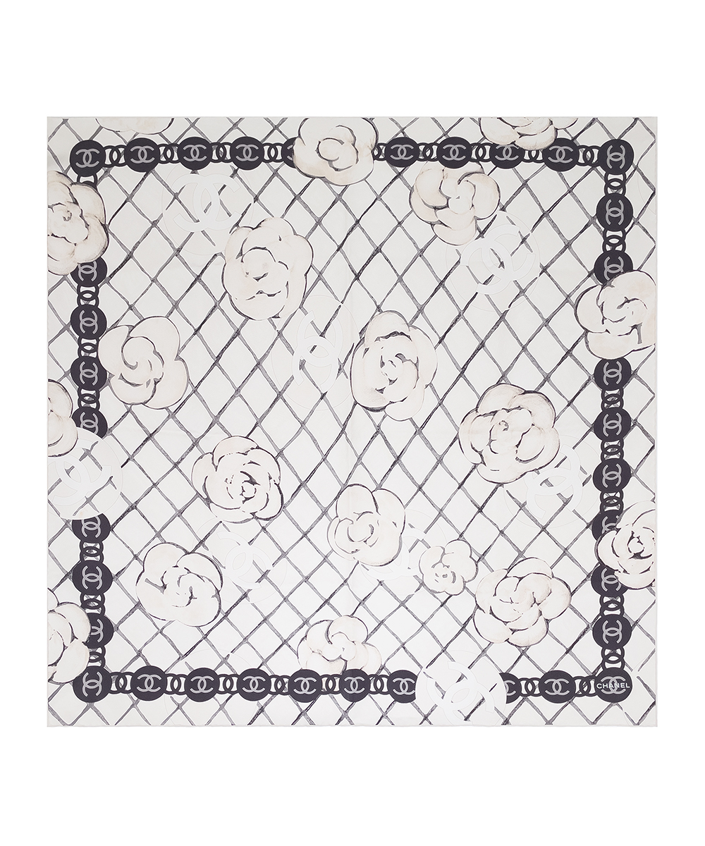 샤넬 19A 까멜리아 CC로고 스카프 화이트/블랙