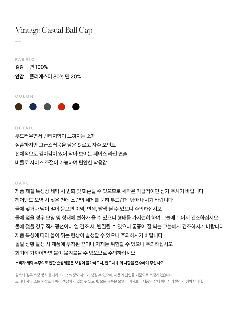 측정 방법에 따라 사이즈에 일부 오차가 있을 수 있습니다.