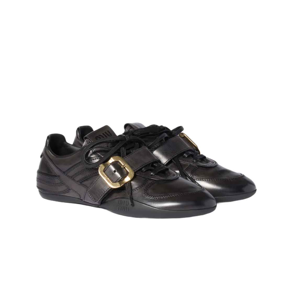 (W) Miu Miu Leather Sneakers with Buckle Black