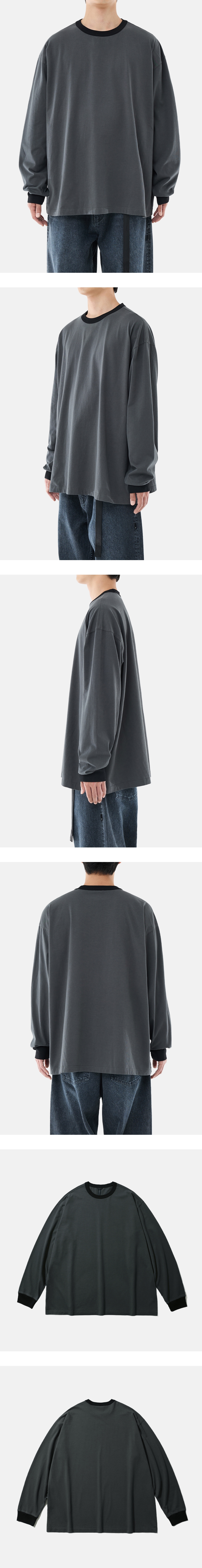 경쾌한 느낌의 긴팔 링거 티셔츠 · 여유 있는 오버사이즈 실루엣. · 골지가 있는 립 오프닝. · 두께감이 있는 고밀도의 부드러운 면 원단 사용. · 수축 방지 가공된 원단으로 세탁 후에도 변형이 적음. · 립 부분은 배색으로 구성하여 경쾌한 느낌 강조. · 좌측 사이드 심 부분 모이프 심볼 포인트 라벨 부착. · 편안한 착용감을 위해 손목 립 부분의 시접을 갈라서 처리.