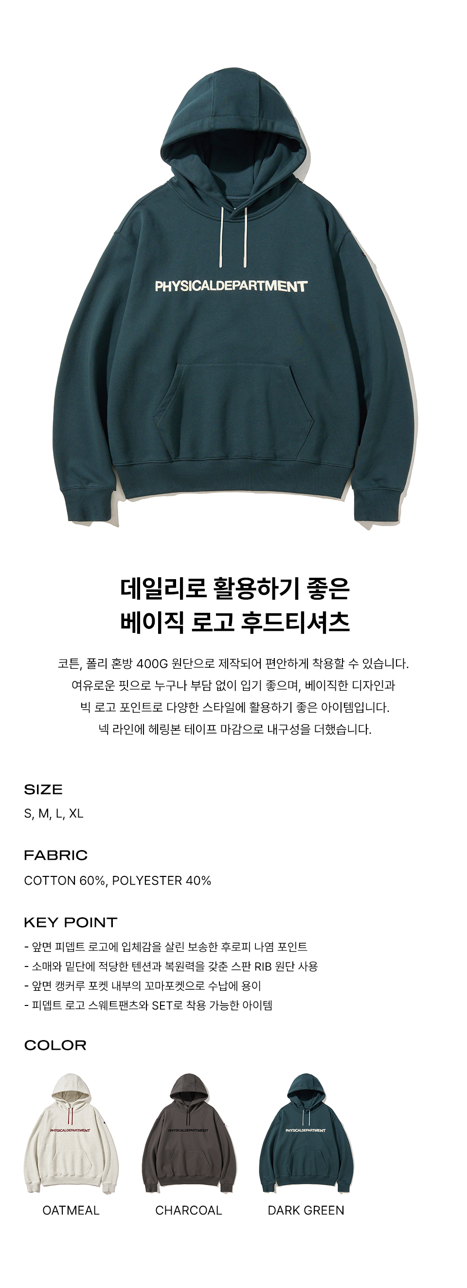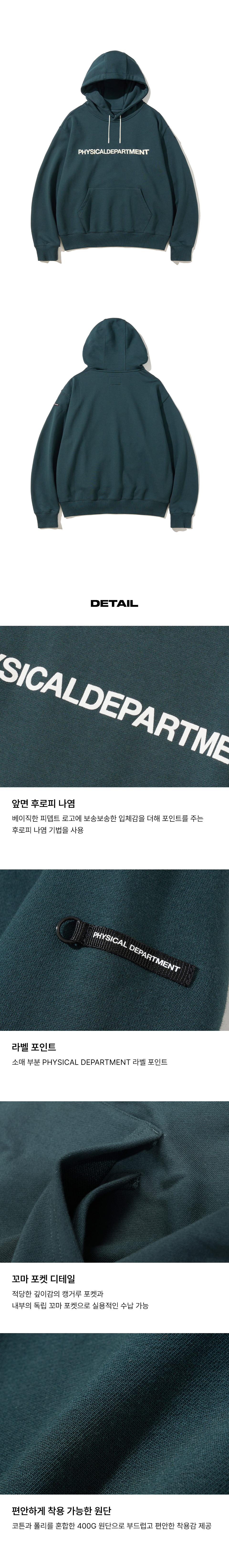 피지컬 디파트먼트 P-Dept 오리지널 로고 후드 다크그린