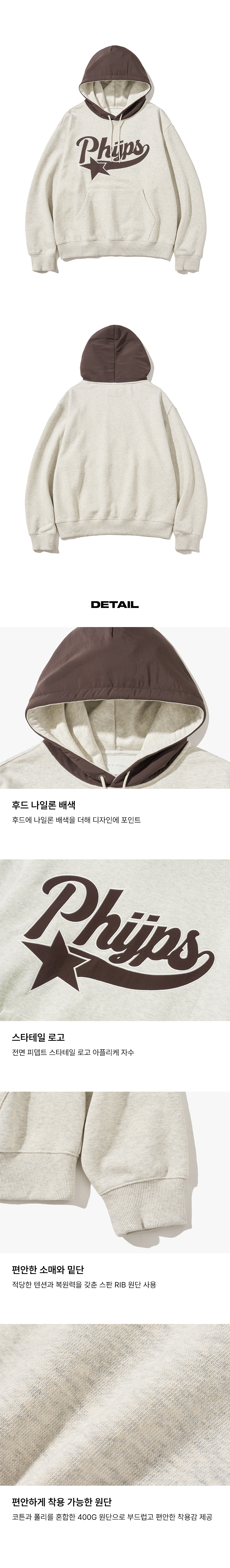 피지컬 디파트먼트 스타테일 나일론 믹스 후드 오트밀