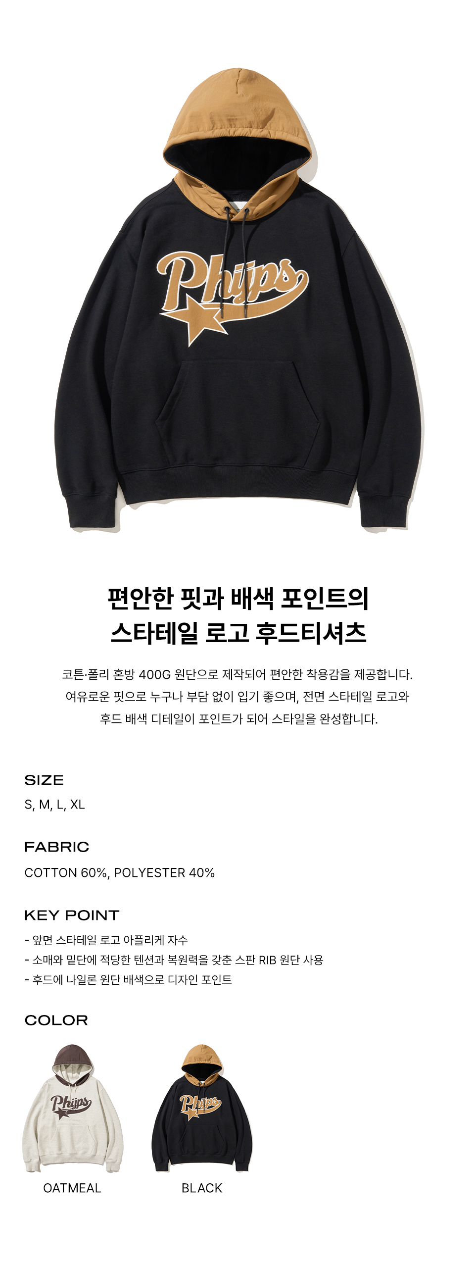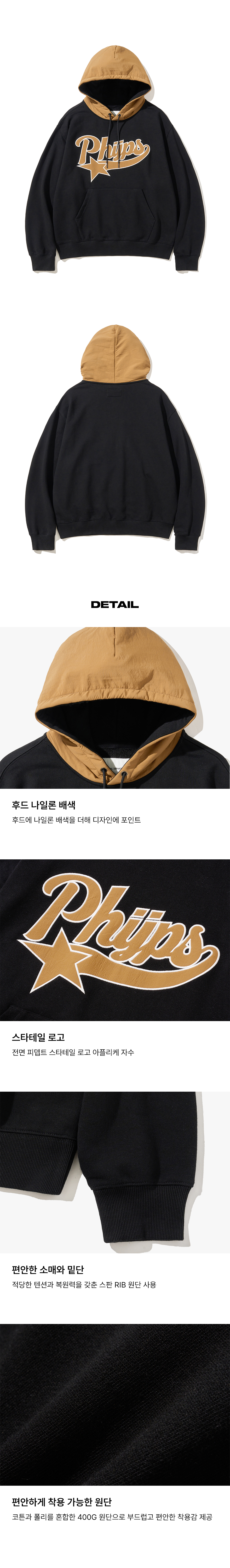 피지컬 디파트먼트 스타테일 나일론 믹스 후드 블랙