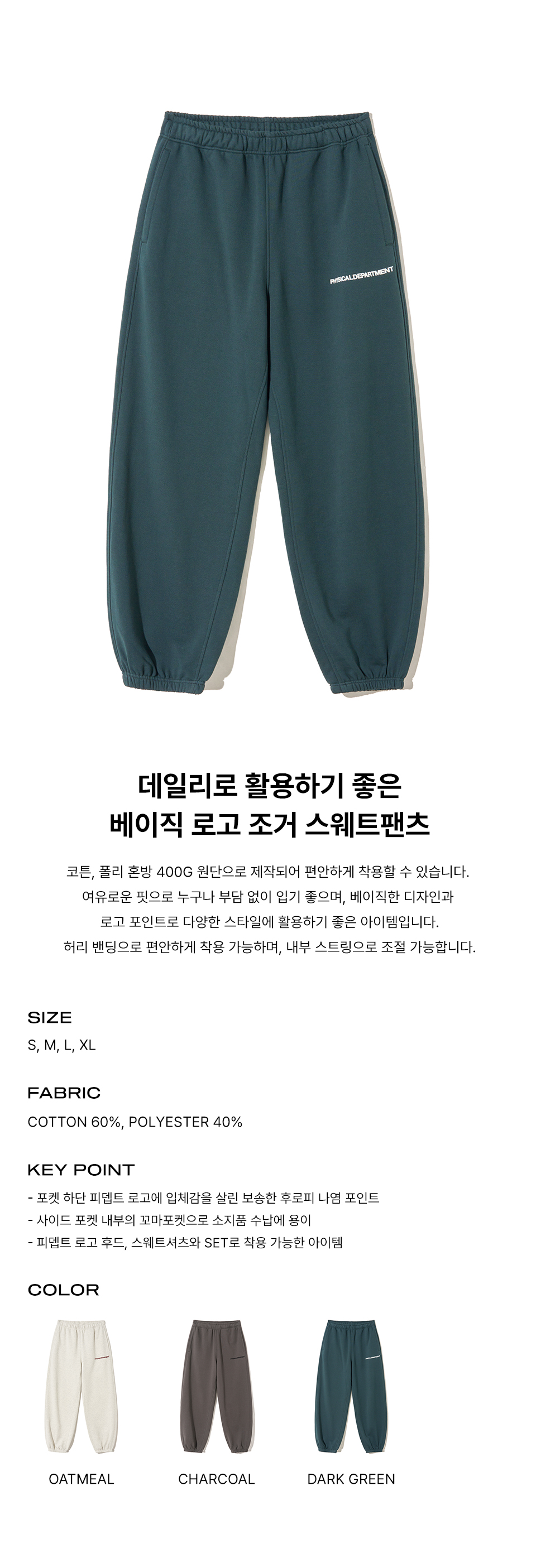 피지컬 디파트먼트 P-Dept 오리지널 로고 스웨트 팬츠 다크그린