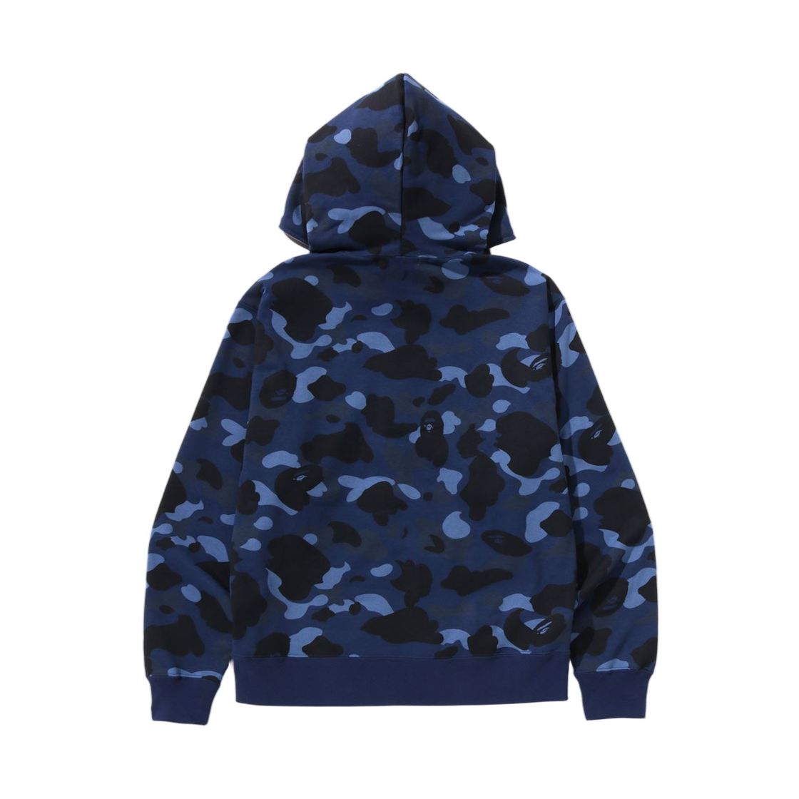 베이프 원 포인트 컬러 카모 크롭 풀 집 후드 네이비