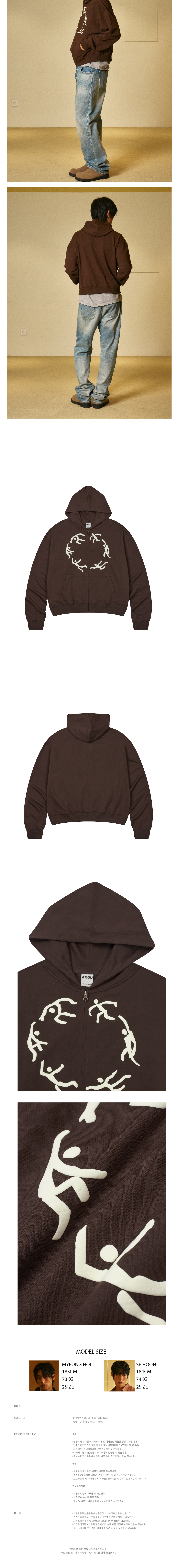 AMOU Dancing Circle Crop Hoodie Zip-Up Brown