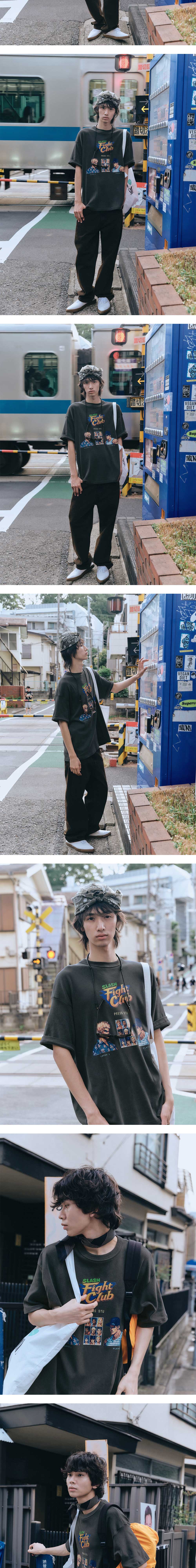 - 루즈 핏 - 차콜 컬러 - 아트웍 디지털 프린팅 디테일 - 피그먼트 가공처리 - 프린팅 사이즈 표기
