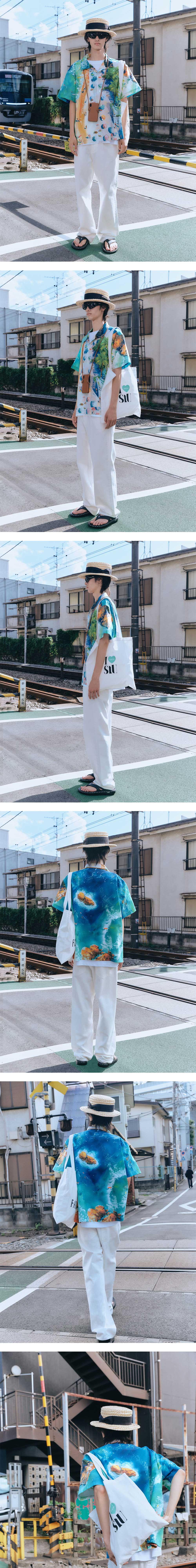 - 루즈 핏 - 전신 아트웍 디지털 프린팅 디테일 - 로고 각인 단추