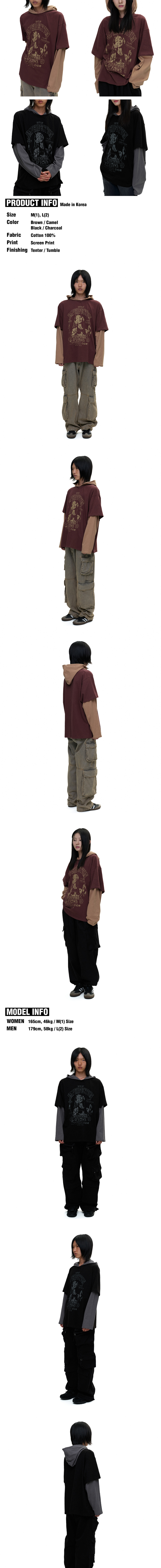 디파이클럽로버스 임펄펙션 레이어드 후디 슬리브 브라운