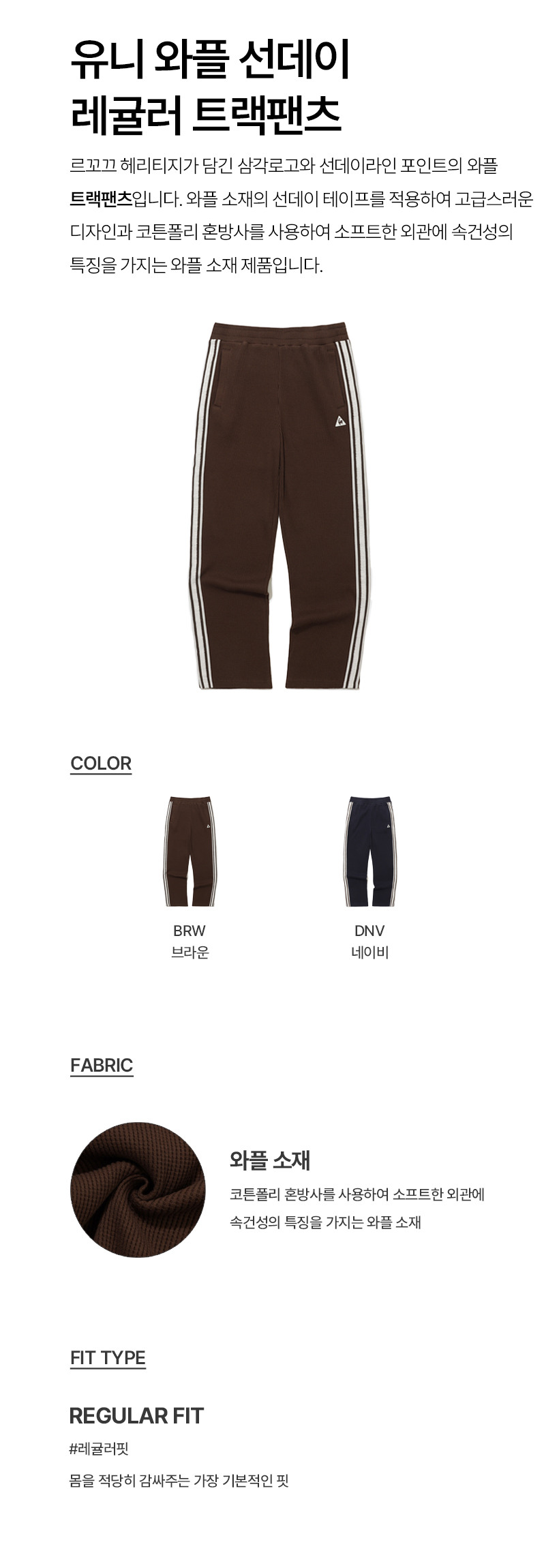 르꼬끄 스포르티브 유니 와플 선데이 레귤러 트랙팬츠 - 브라운(QQ323LFP93)
