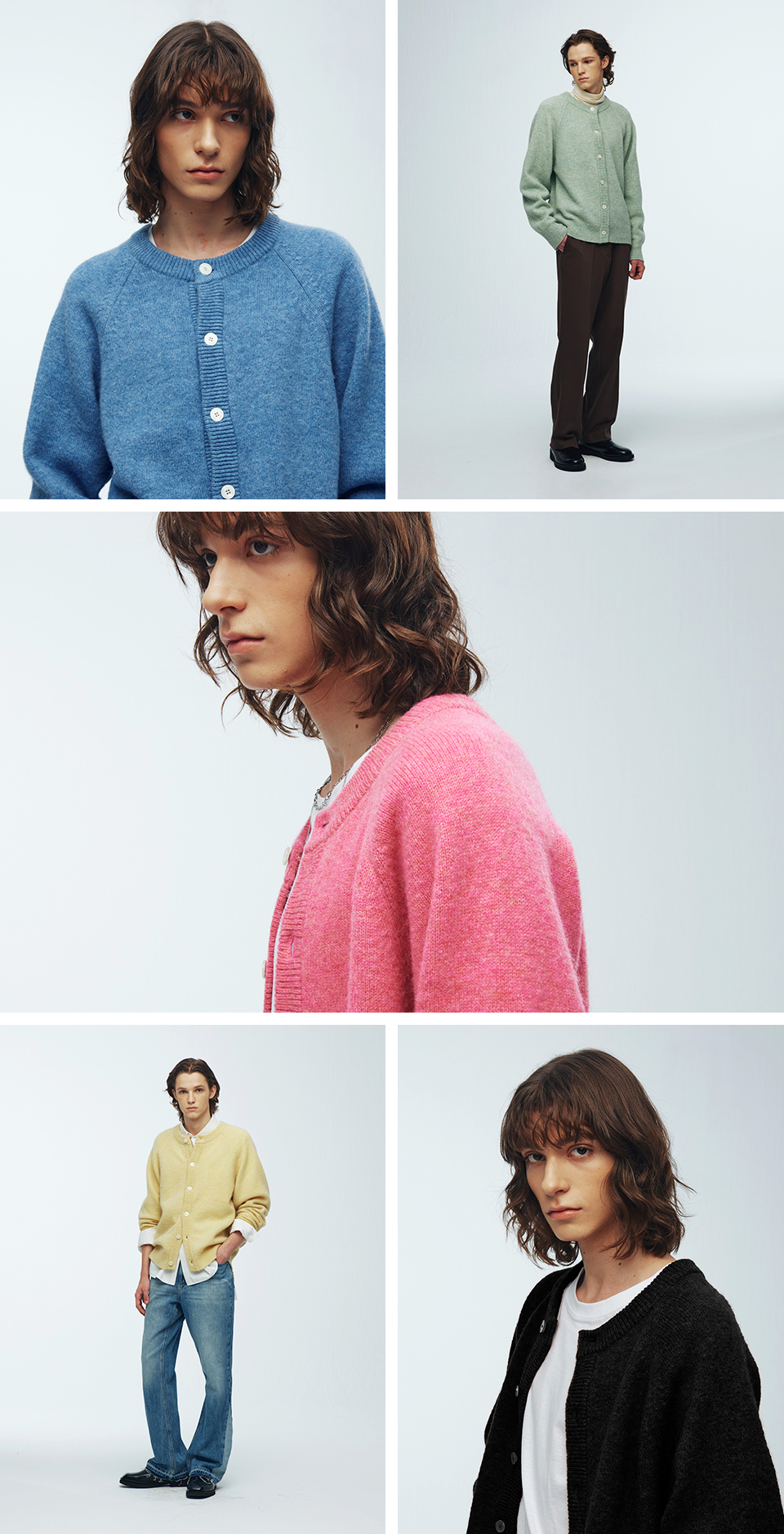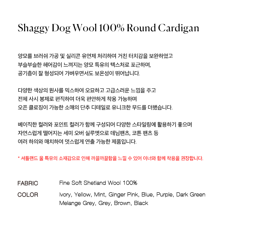 니티드 쉐기독 울 100 라운드 가디건 브라운