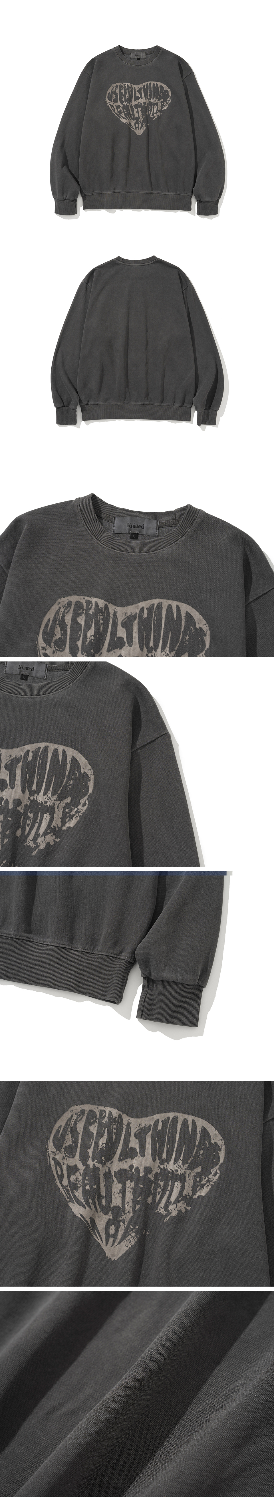 니티드 피그먼트 하트 맨투맨 차콜