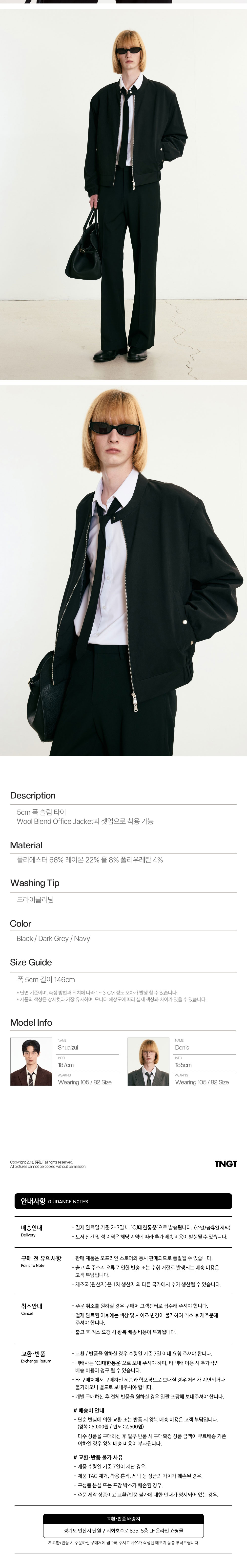 티엔지티 컴포트 슬림 타이 블랙
