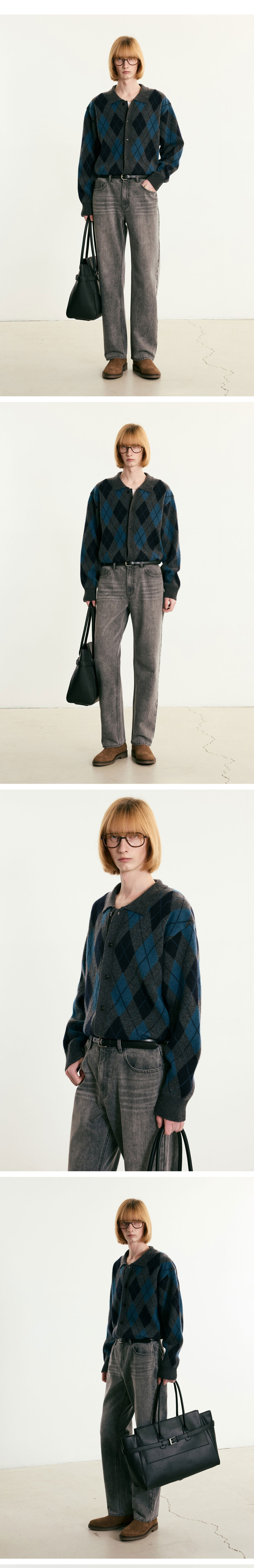 티엔지티 울 블렌디드 아가일 폴로 가디건 다크 그레이