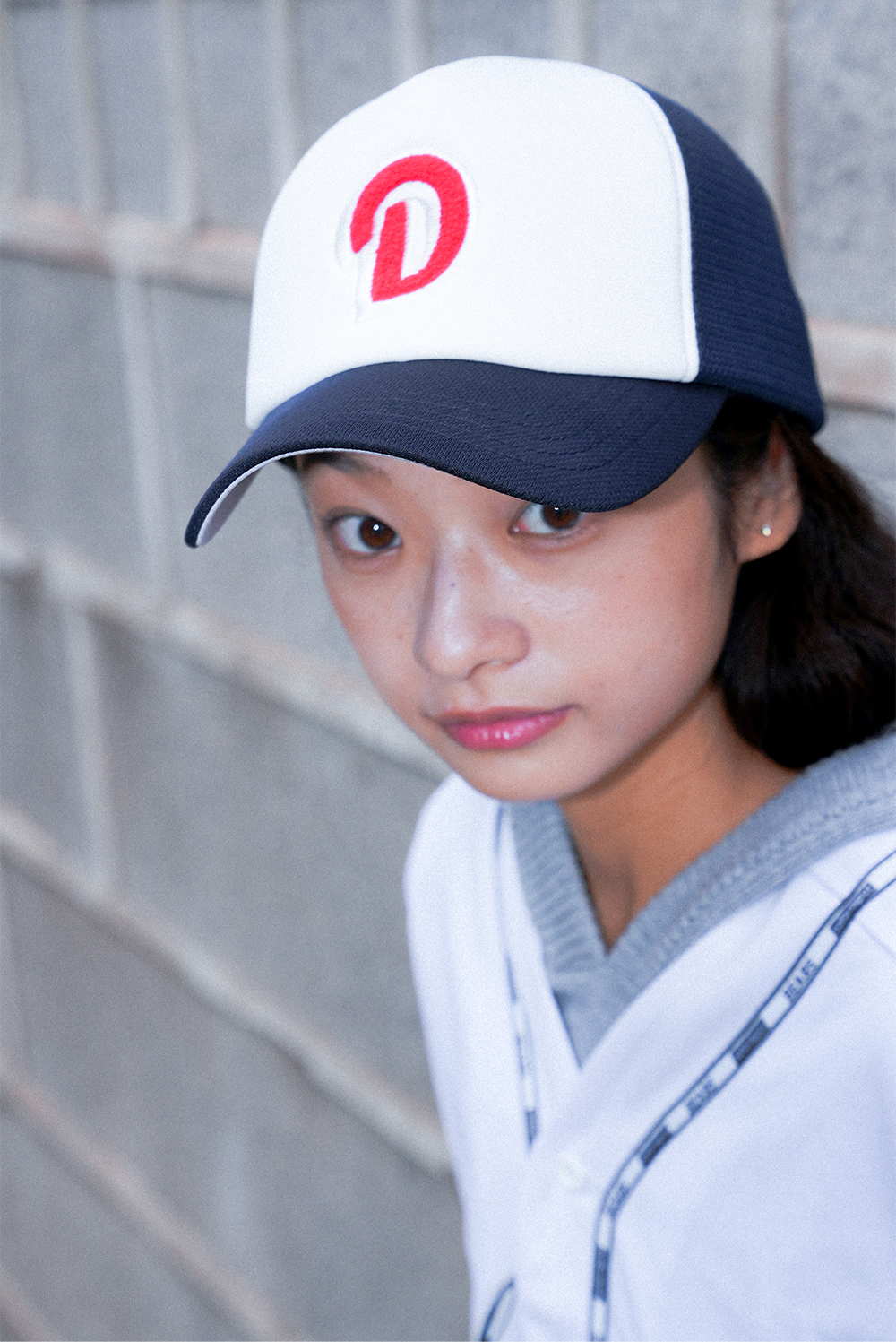 두산베어스 상징 로고를 적용한 모자로 전면은 흰색 창과 측면은 네이비 컬러로 조합된 투톤 배경으로 두산 팀 컬러 느낌을 살린 제품입니다.