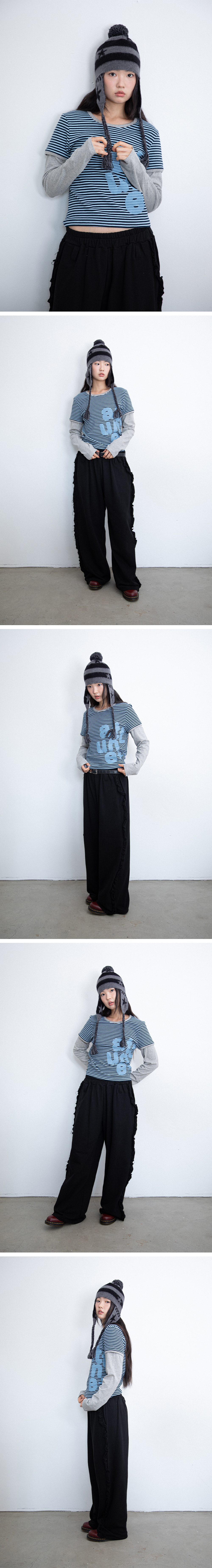 이스트쿤스트 어튠 스트라이프 레이어드 롱슬리브 티셔츠 블루