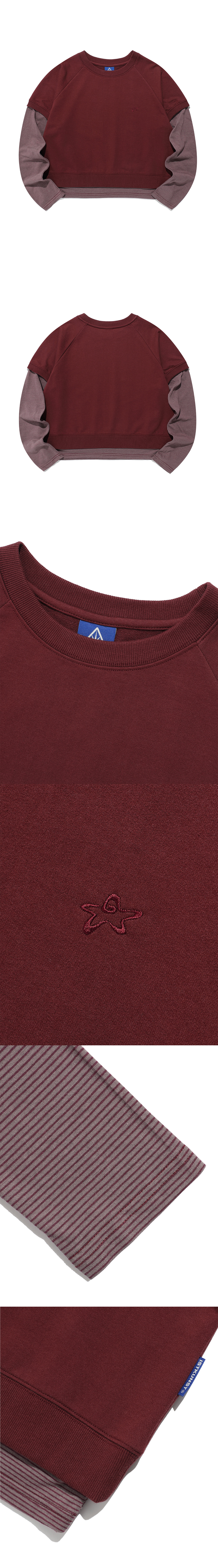 이스트쿤스트 레이어드 래글런 스트라이프 롱슬리브 티셔츠 버건디
