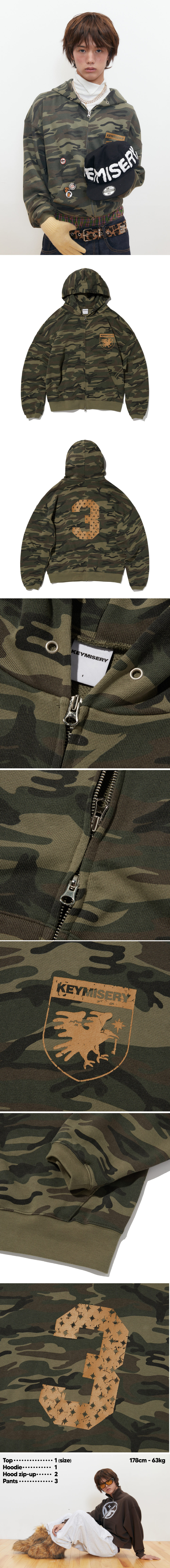 키미저리 크로우 키스 크롭 후드 집업 - 카모