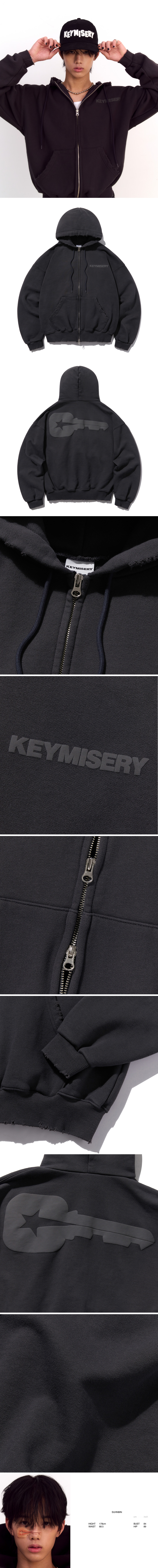 Keymisery Star Key's Vintage Crop Hood Zip-up - Charcoal
