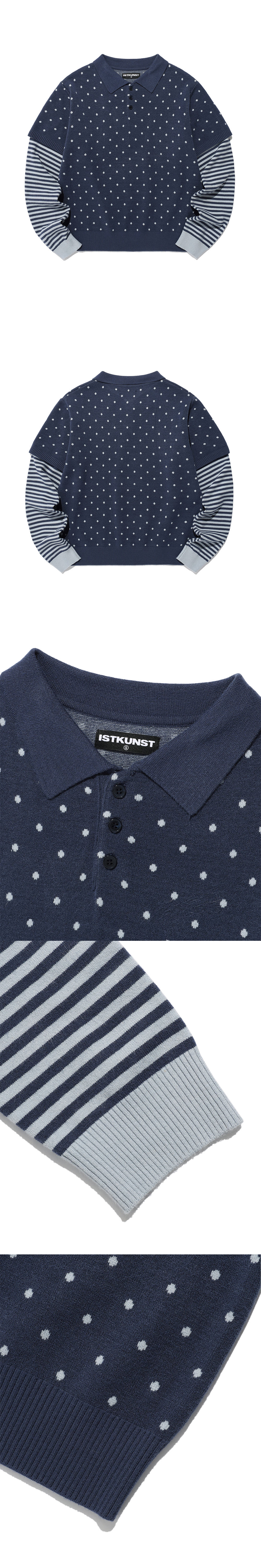 ISTKUNST Dot Stripe Layerd Collar Knit Navy