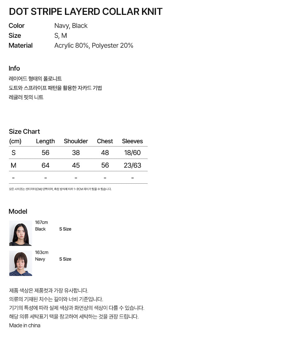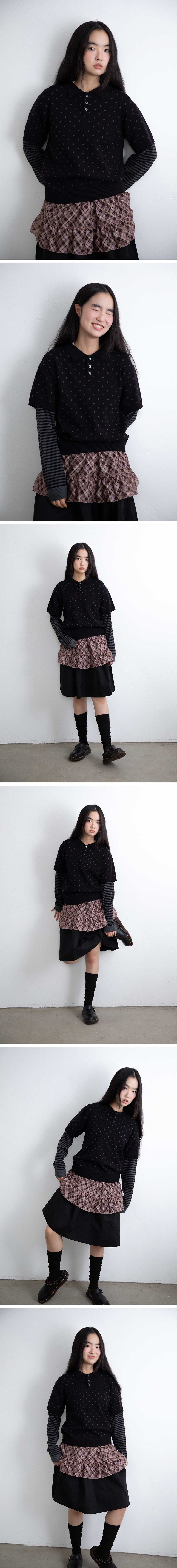 이스트쿤스트 도트 스트라이프 레이어드 칼라 니트 블랙