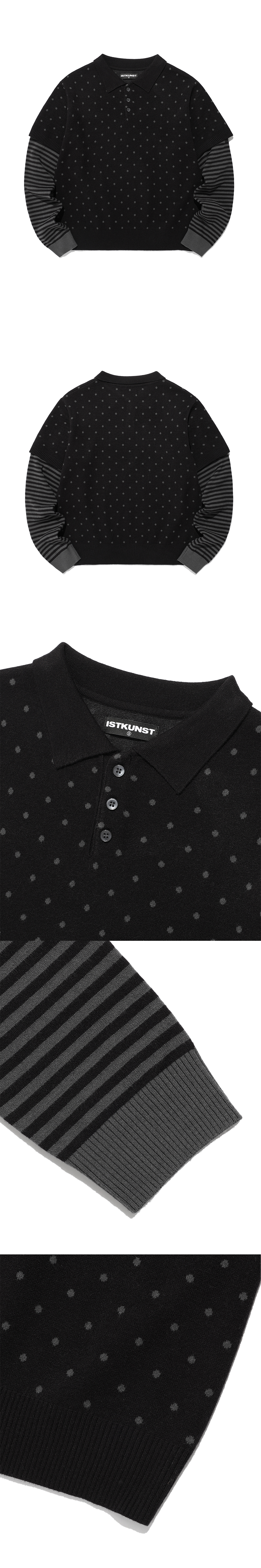 ISTKUNST Dot Stripe Layerd Collar Knit Black