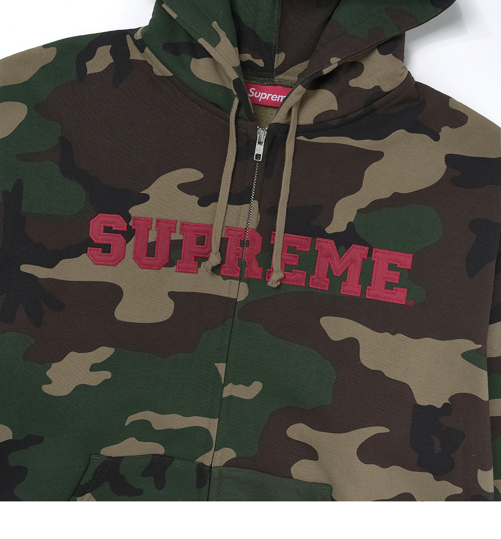 Supreme Collegiate Applique Zip Up Hooded Sweatshirt Woodland Camo - 25FW