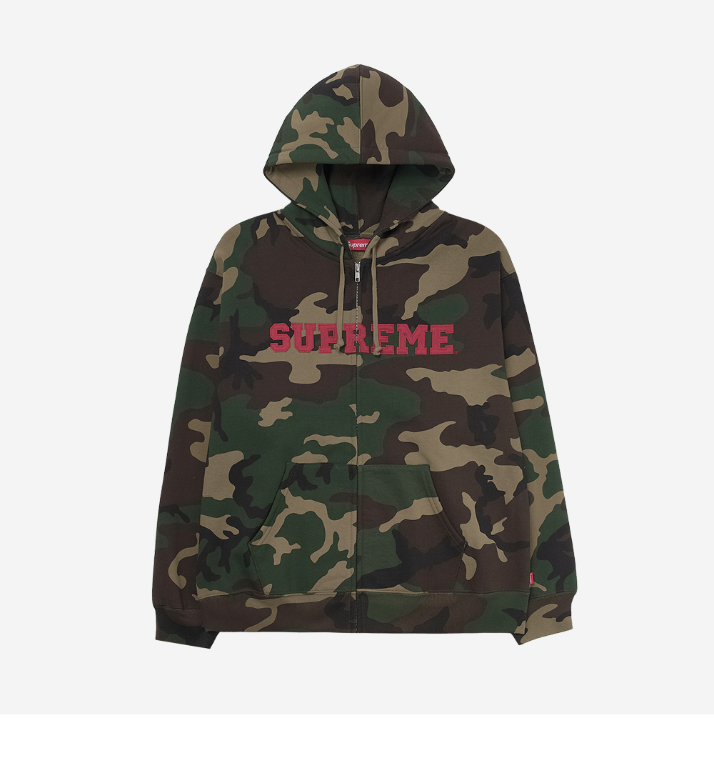슈프림 컬리지에이트 아플리케 집업 후드 스웨트셔츠 우드랜드 카모 - 25FW