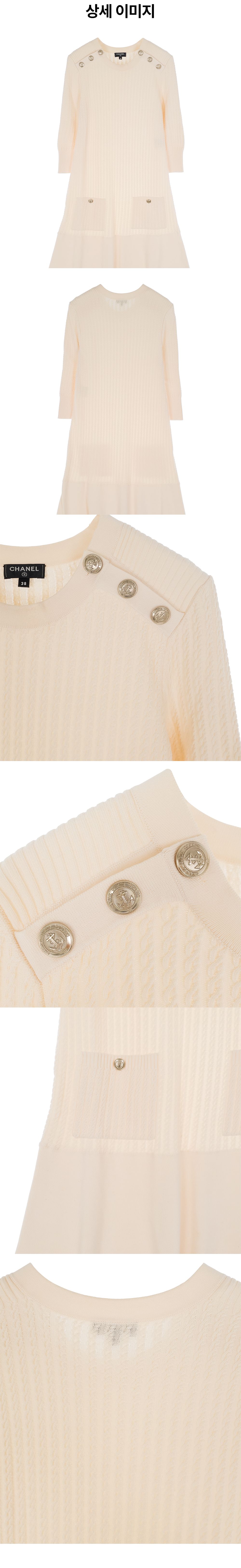 샤넬 투포켓 코튼 니트 원피스 38 아이보리