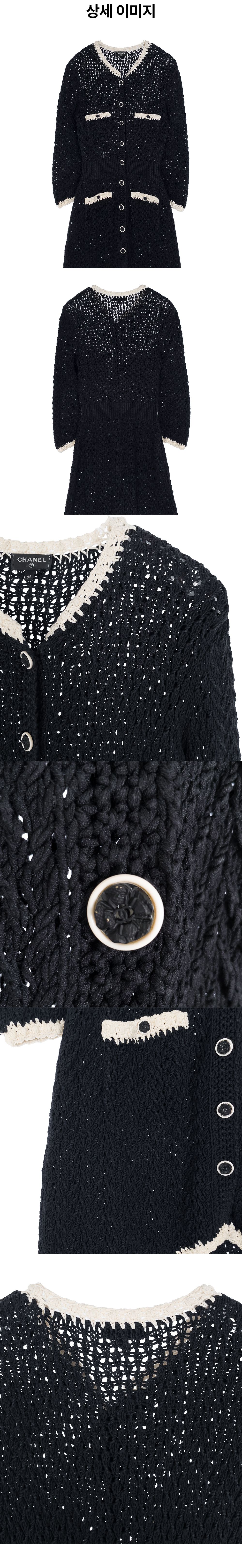 샤넬 22C 니트 원피스 34 블랙/에크루