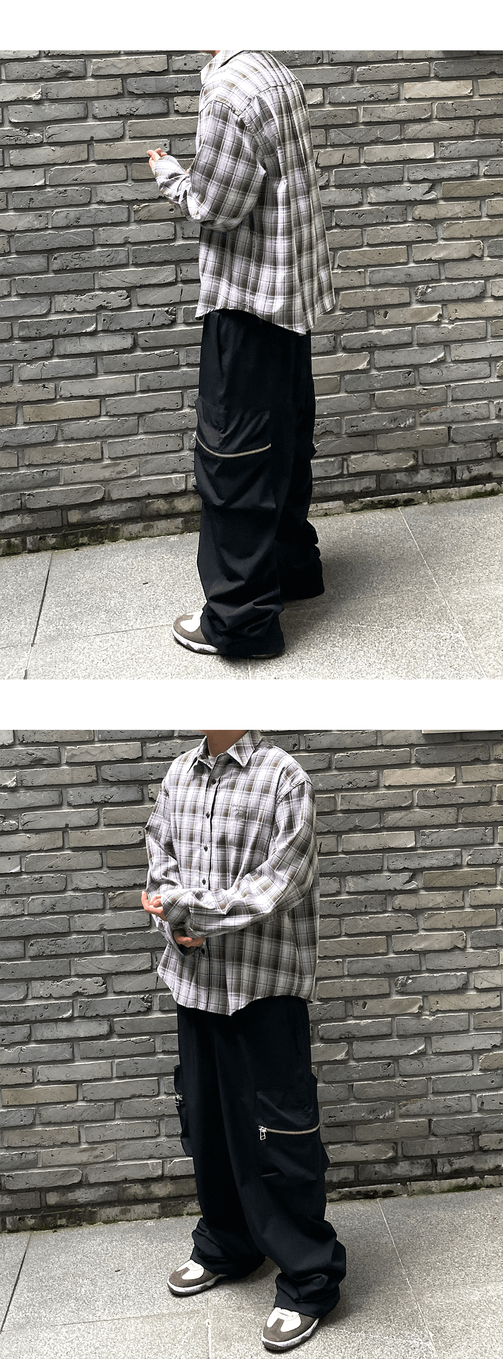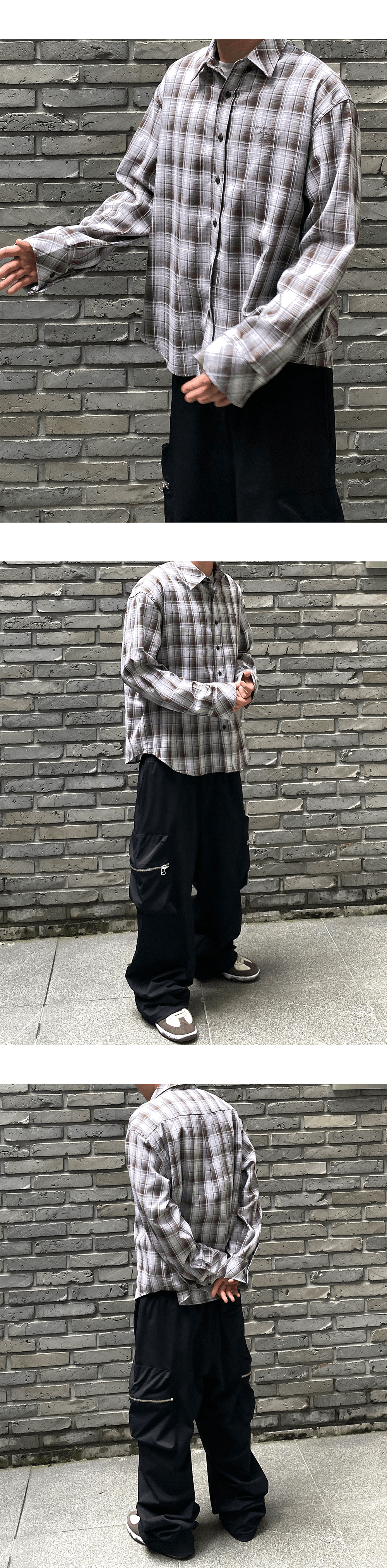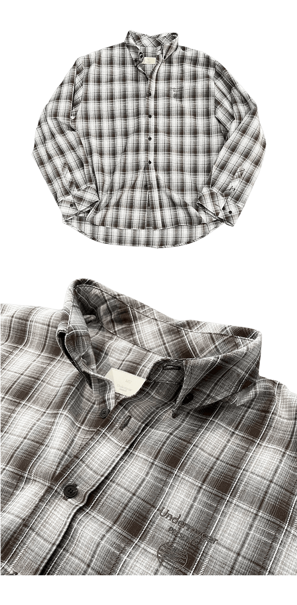 Undermycar MU.137 Circle Logo Basic Long Sleeve Check Shirts White Brown