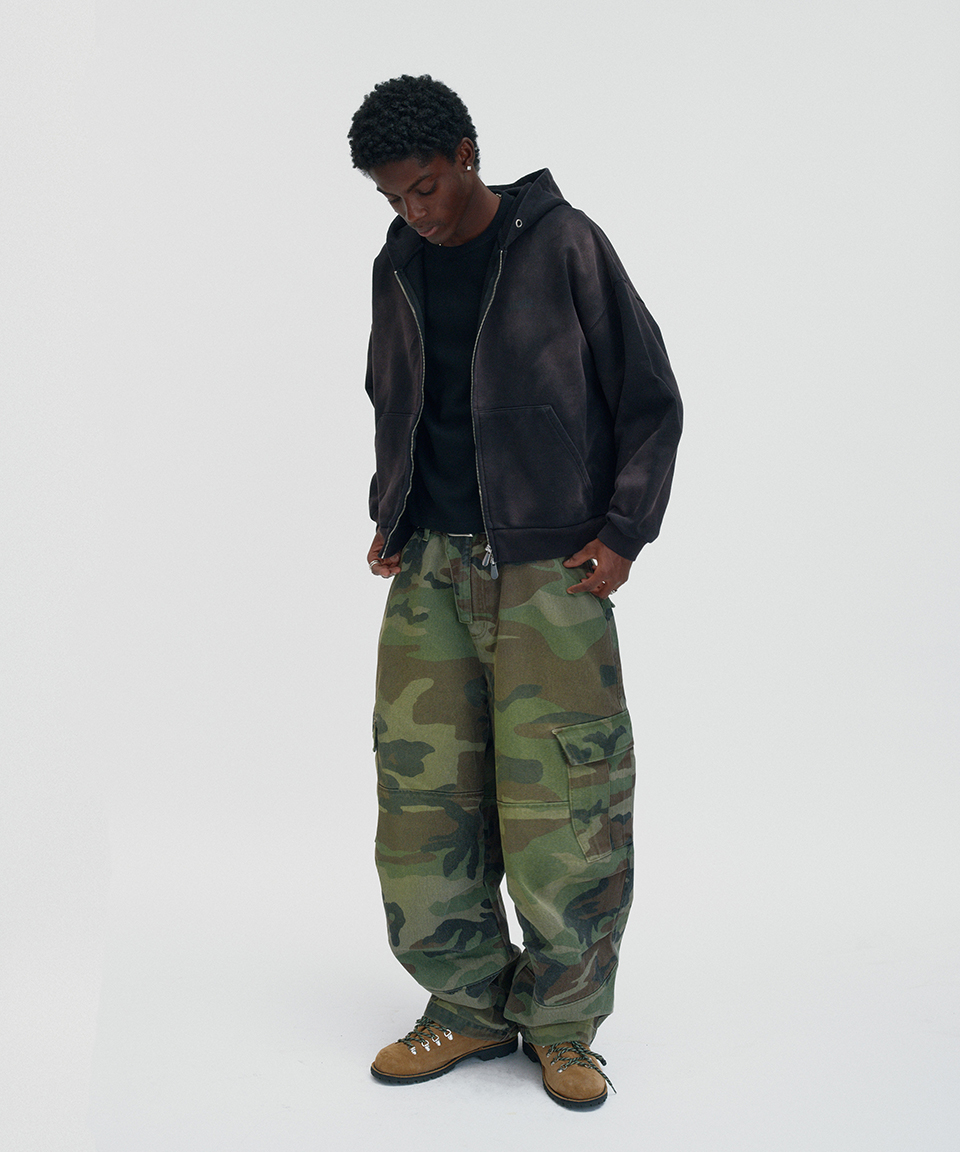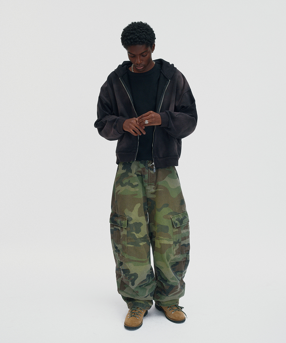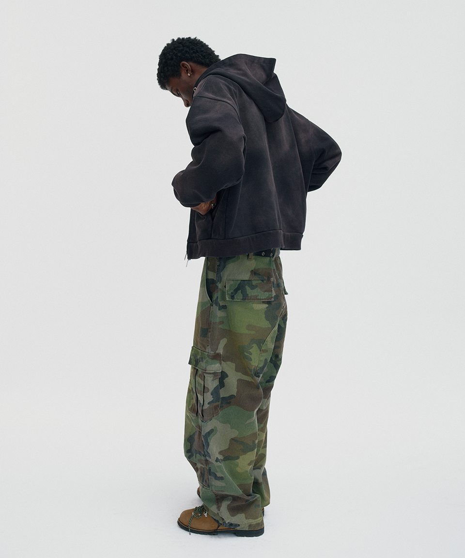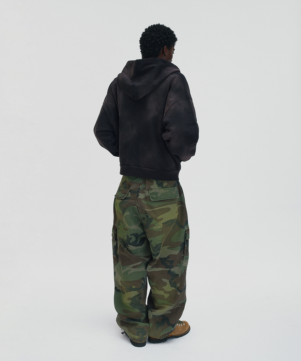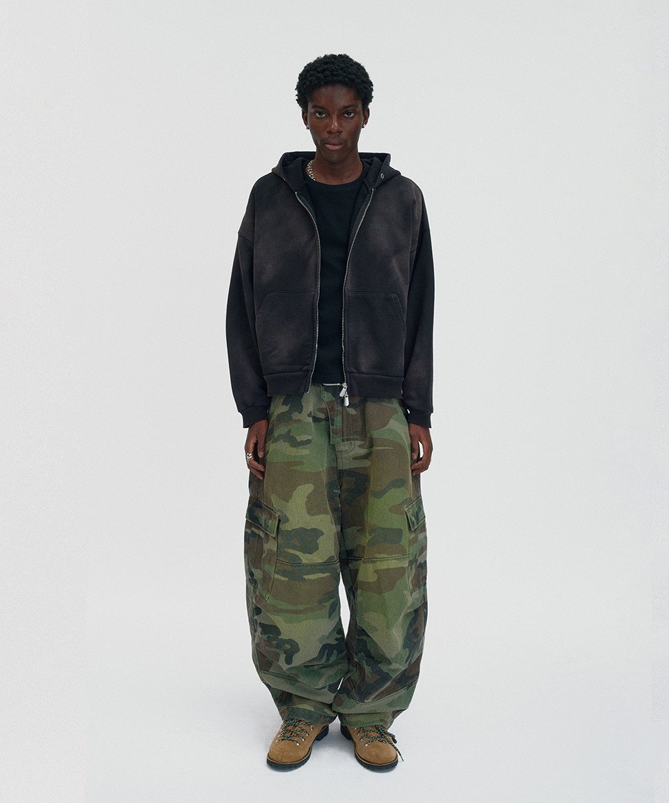 스웨이드 크롭 워시드 후드 집업 다크 블랙