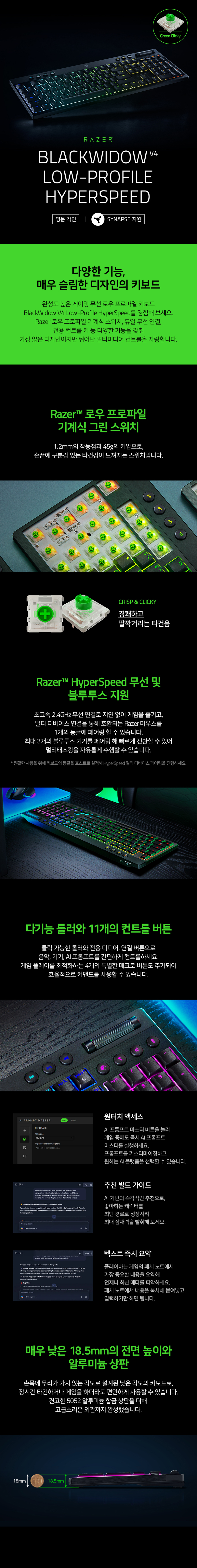 레이저 블랙위도우 V4 로우 프로파일 하이퍼스피드 영문