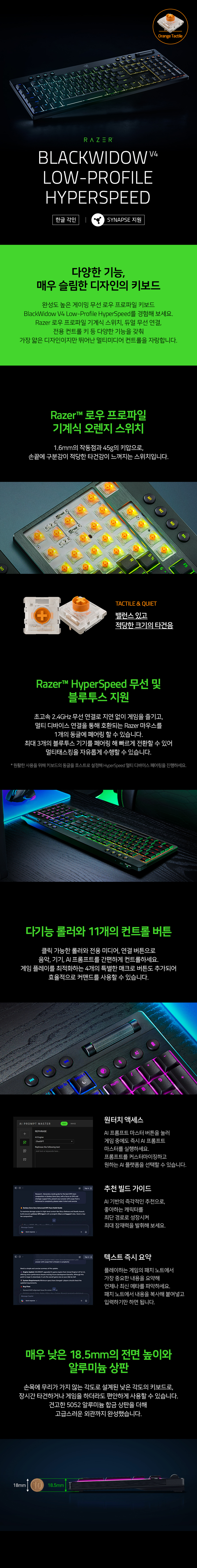 레이저 블랙위도우 V4 로우 프로파일 하이퍼스피드 오렌지축 한글
