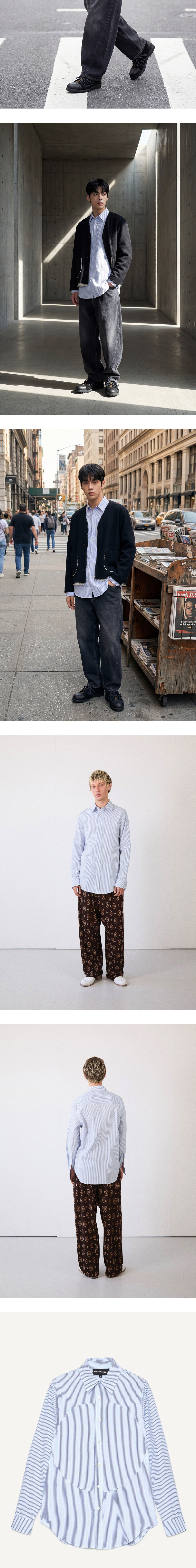 에드워드 커밍 우먼 핀턱 렁 셔츠 페일 블루 네이비 - 25FW