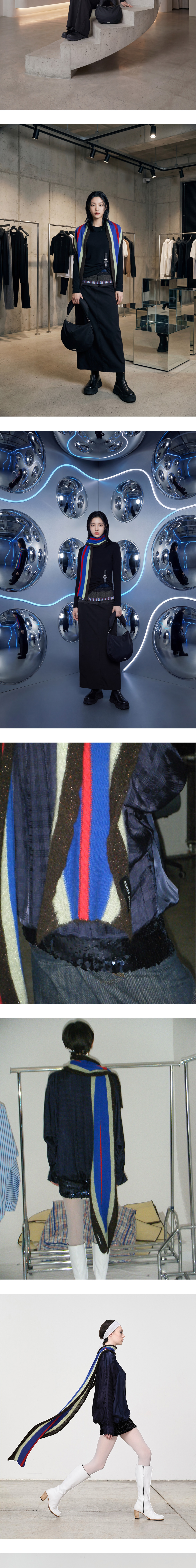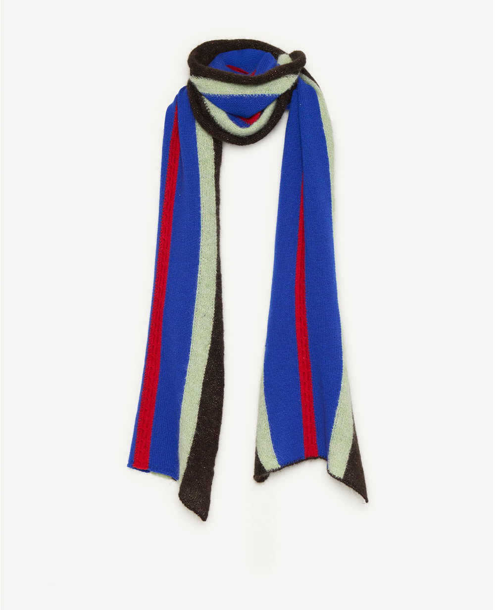 컬러풀한 배색이 매력적인 에드워드 커밍 우먼 탑 뷰 스카프 - 1.8 X 0.33Mtr 블루 레드 그린입니다. - 브라운 컬러 블록에 은은한 글리터 디테일이 더해진, 미디엄 웨이트의 롱 스카프 - 메리노 울 블렌드 소재로 부드러운 터치감 - 원사이즈 ✧ AI로 제작한 콘텐츠가 포함되었습니다.