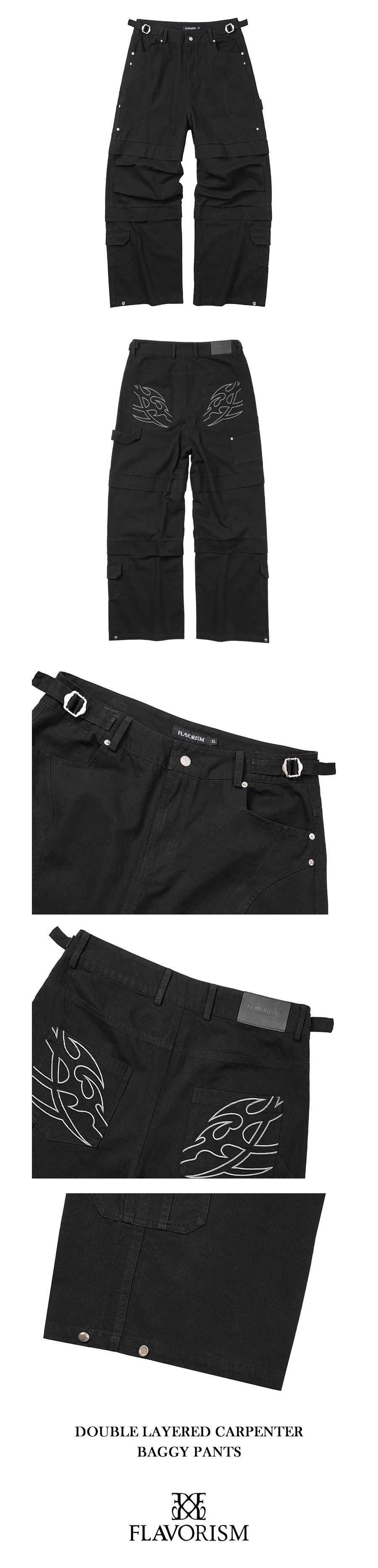 Flavorism Double Layered Carpenter Baggy Pants Black