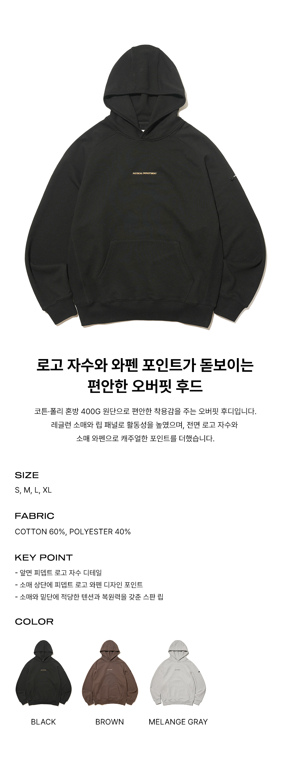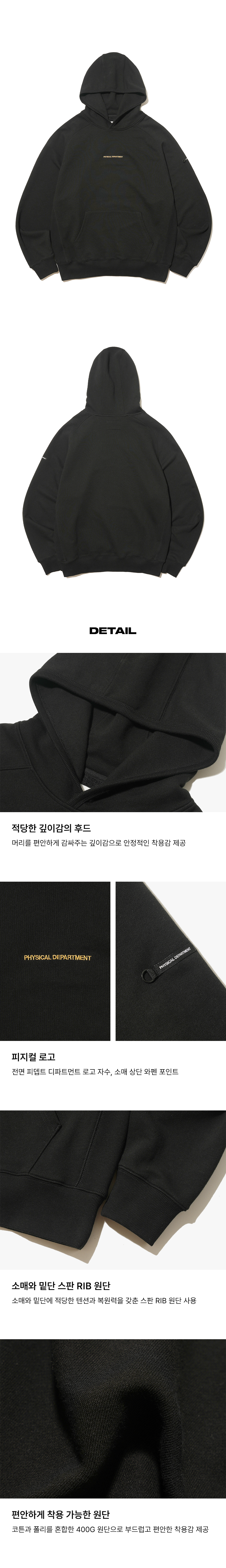 피지컬 디파트먼트 P-Dept 오리지널 로고 필드 후드 블랙