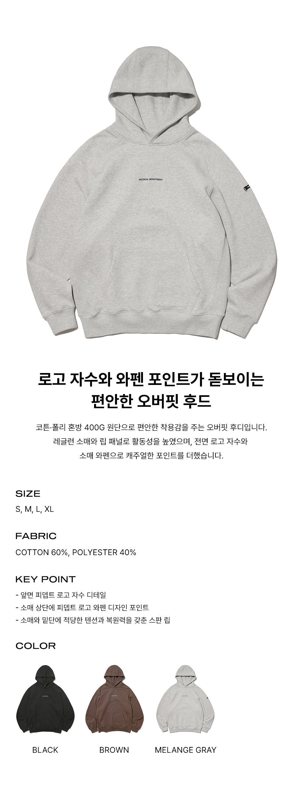 피지컬 디파트먼트 P-Dept 오리지널 로고 필드 후드 그레이