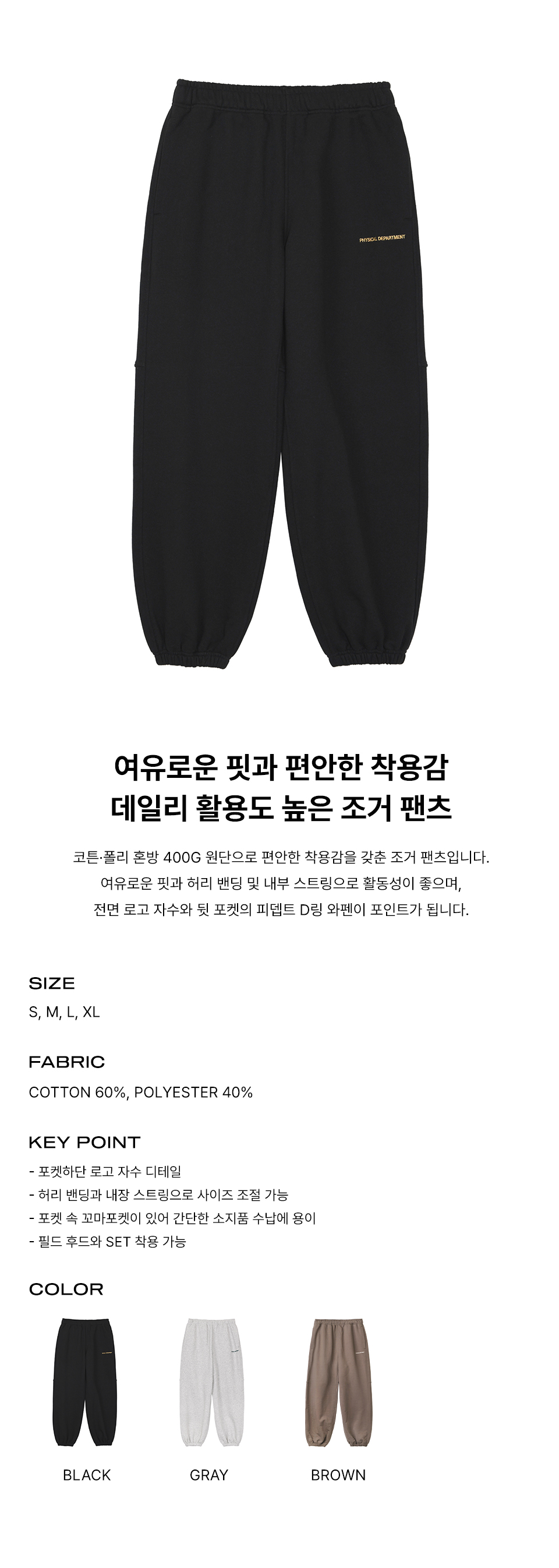 피지컬 디파트먼트 오리지널 로고 필드 스웻팬츠 블랙