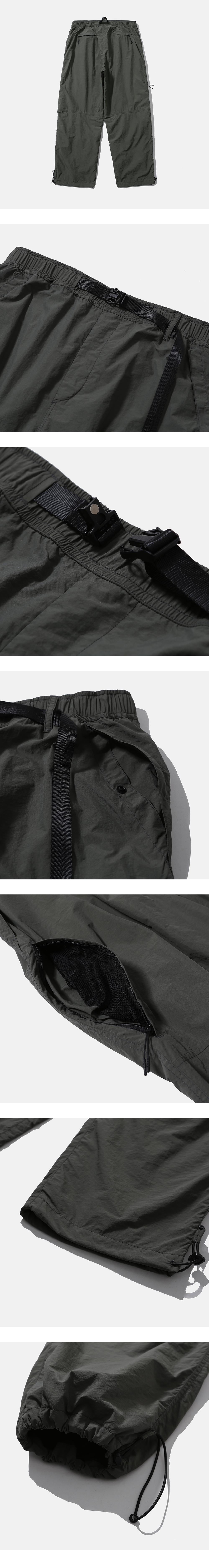 야외활동에 활용도가 높은 지퍼 주머니가 매력적인 팬츠 · 여유 있는 편안한 실루엣. · 나일론/면 혼방 원단 사용. · 가볍고 얇은 기모 안감을 사용하여 보온성 강화. · 지퍼가 부착되어 중요한 소지품 수납에 용이한 허벅지와 후면부 포켓. · 신축성 있는 내장형 이밴드와 사이즈 조절이 가능한 허리 벨트 사양. · 가랑이 부분에 거셋 디테일 넣어 활동성 확보. · 실루엣 조절이 가능한 밑단 스트링으로 2가지 타입으로 연출 가능.
