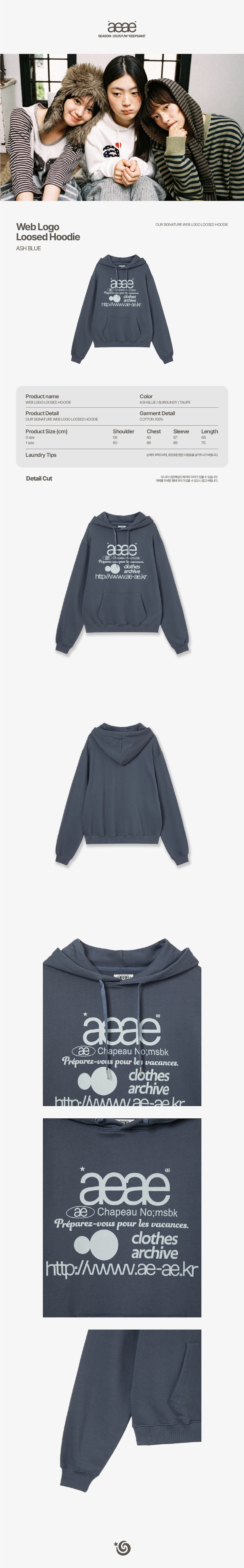 에이이에이이 웹 로고 루즈드 후디 애쉬 블루