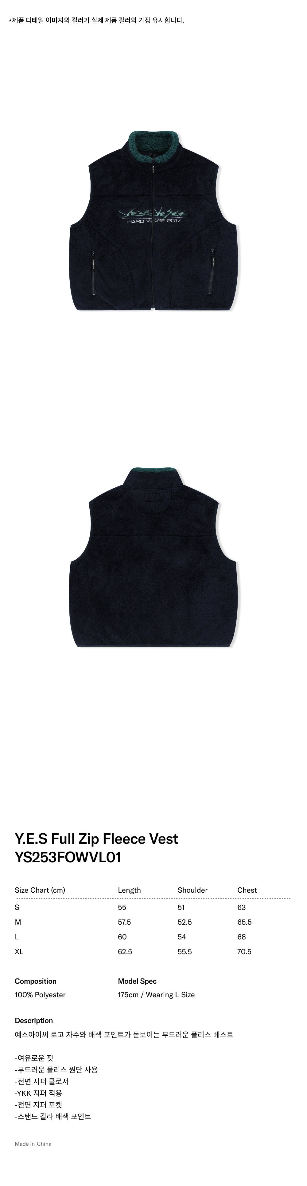 예스아이씨 예스 풀 집 플리스 베스트 네이비